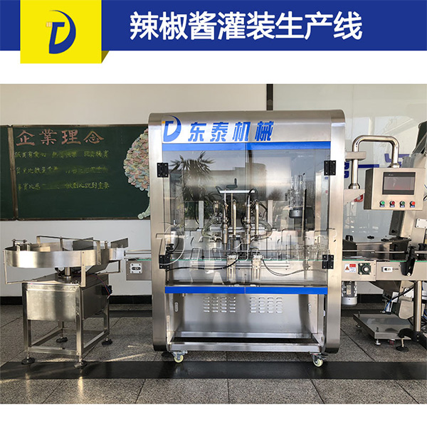辣椒酱灌装机采用活塞式灌装原理,适用于调味品中带颗粒并且浓度较大的辣椒酱、豆瓣酱、花生酱、香菇酱、果酱、牛油火锅底料、红油火锅底料、虾酱等较为粘稠酱类的灌装。